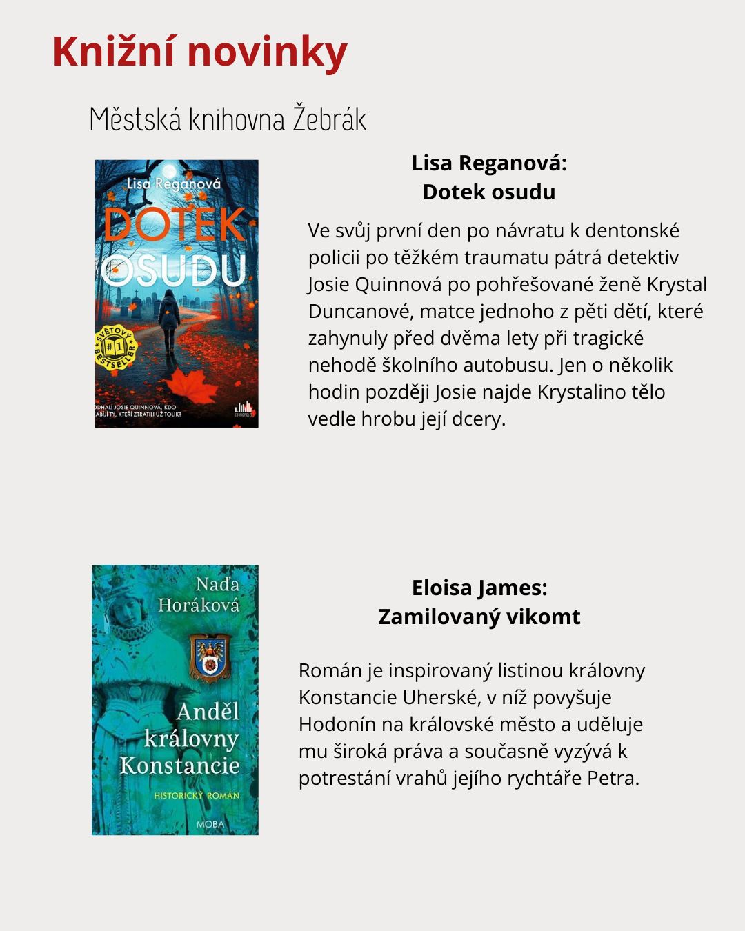 Vážení čtenáři, máme tu opět novou várku knih. Nezapomínáme ani na děti a na knihy pro náctileté.