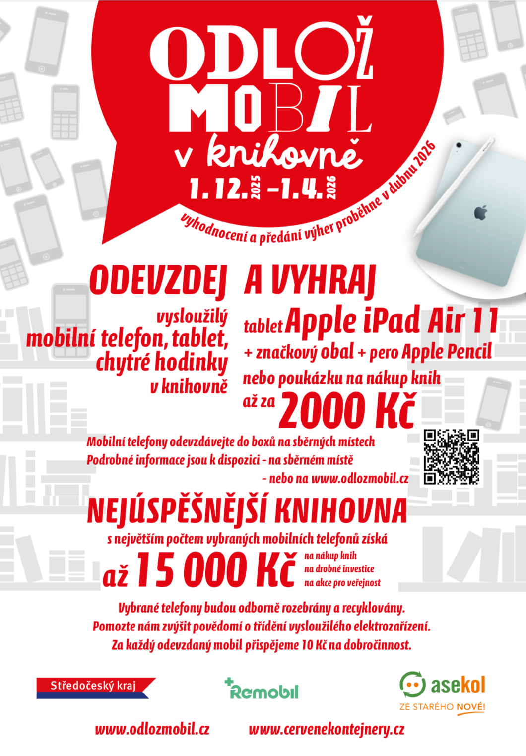 V těchto dnech u nás v knihovně startuje akce Odlož mobil v knihovně. Odevzdej vysloužilý mobilní telefon, tablet, chytré hodinky a vyhraj tablet Apple, iPad nebo poukázku na nákup knih až za dva tisíce. Více info se dozvíte v knihovně.